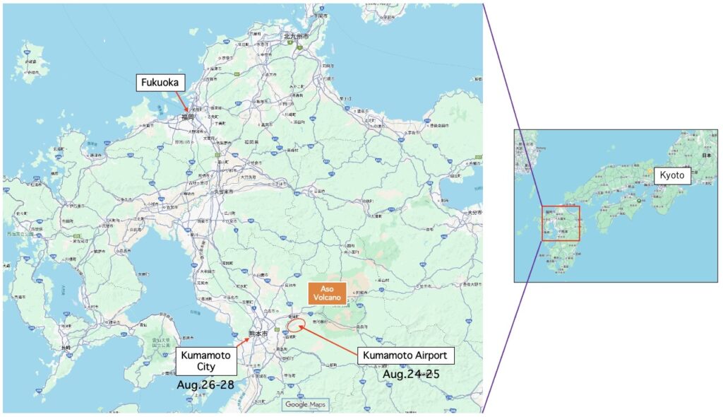 (The conference on August 24th and 25th will be held at Tokai University Rinku Campus, next to Kumamoto Airport)